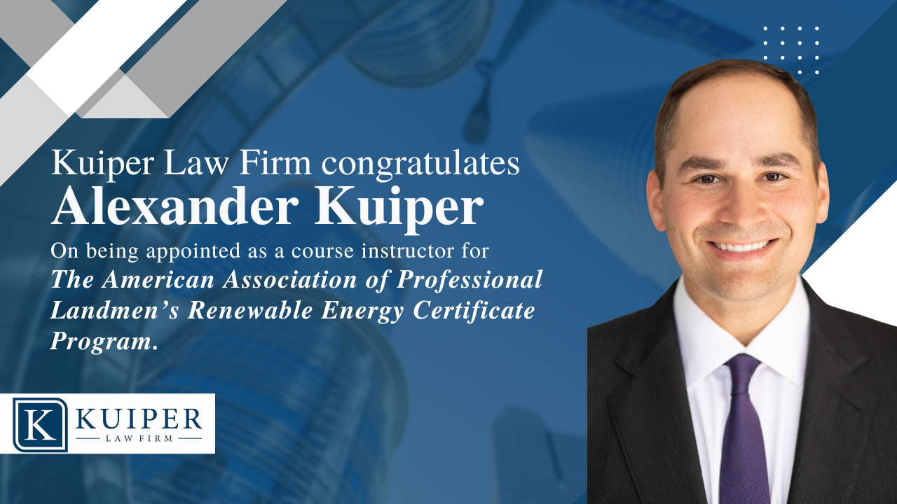 Alex Kuiper Receives Certification in Oil, Gas and Mineral Law from the Texas Board of Legal Specialization