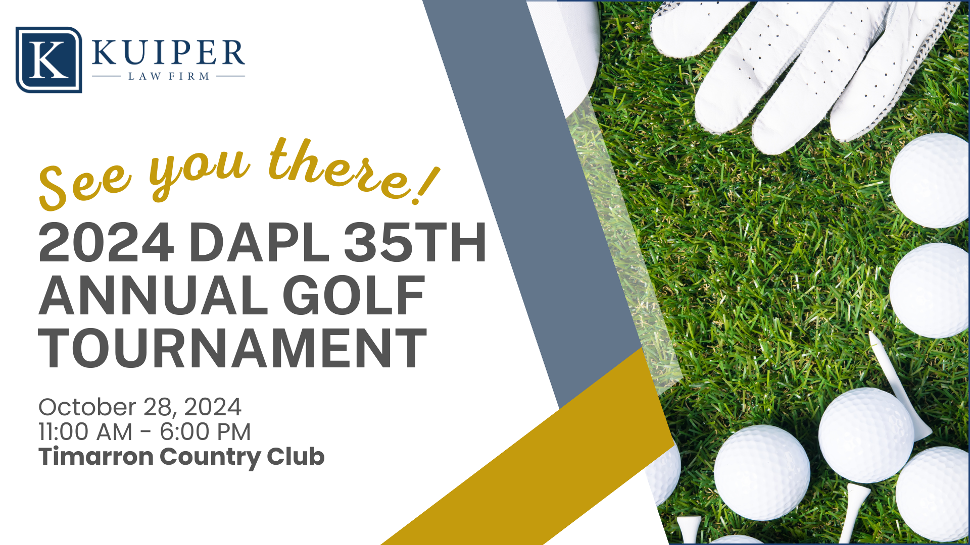 Timarron Country CLub 1400 Byron Nelson Pkwy, Southlake, TXKuiper Law Firm is excited to attend the DAPL 35th Annual Golf Tournament and connect with other DFW industry professionals. We’re looking forward to a great day on the course…