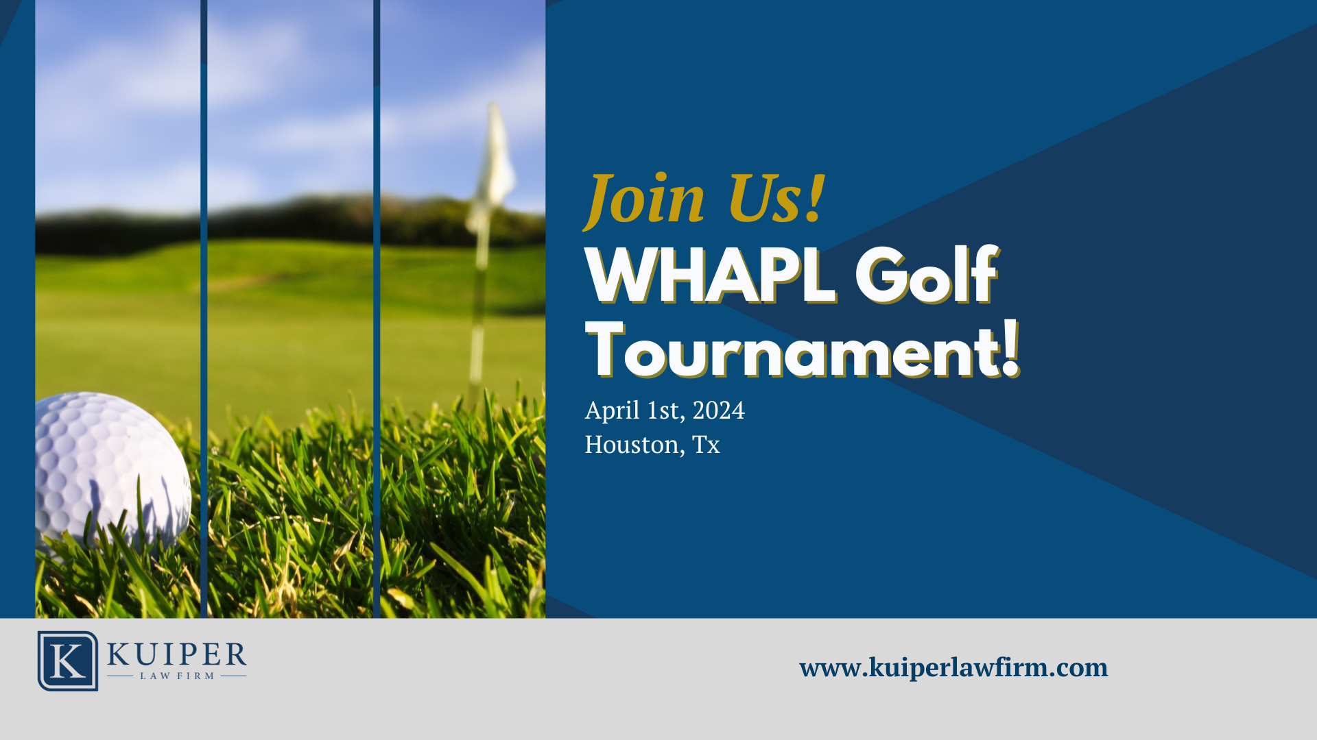 Join Kuiper Law Firm in attending the WHAPL 2024 Golf Tournament. We look forward to seeing you there!