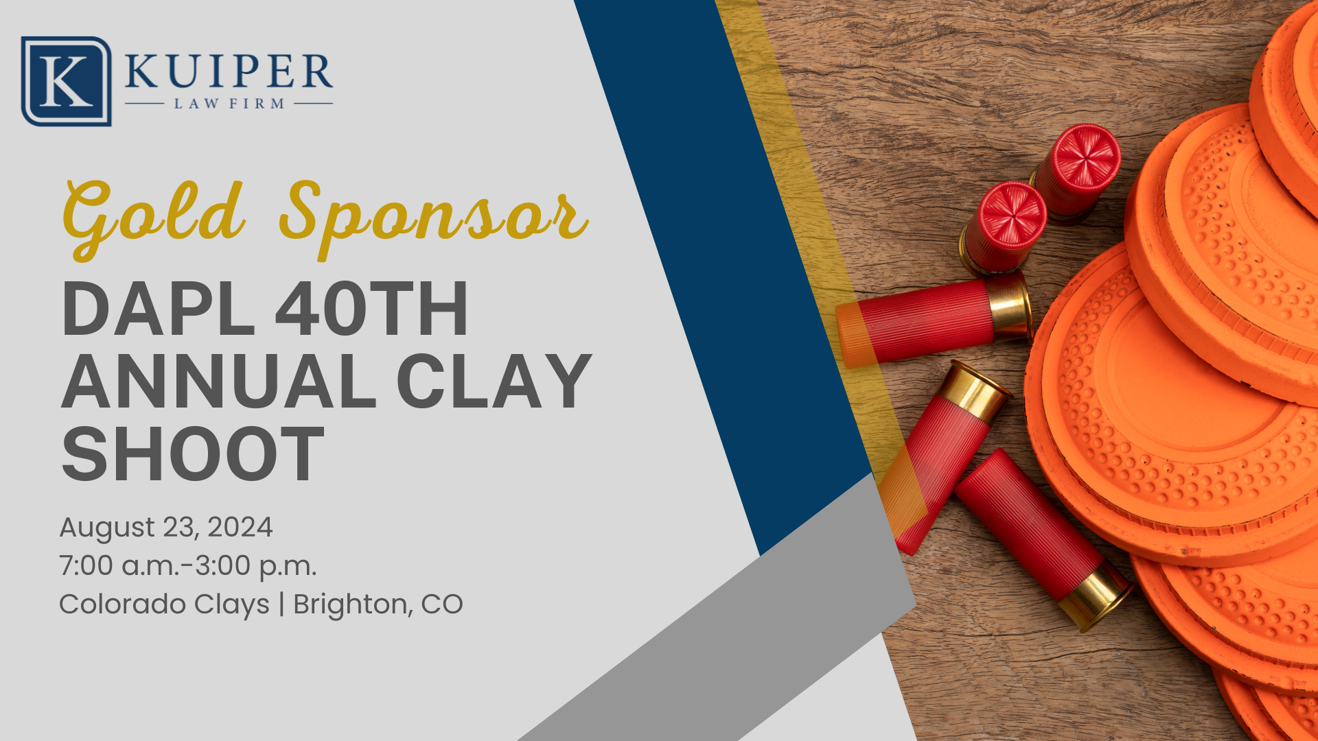 Kuiper Law Firm is proud to be a gold sponsor at DAPL 40th Annual Clay Shoot on August 23, 2024. We hope to see everyone there!
