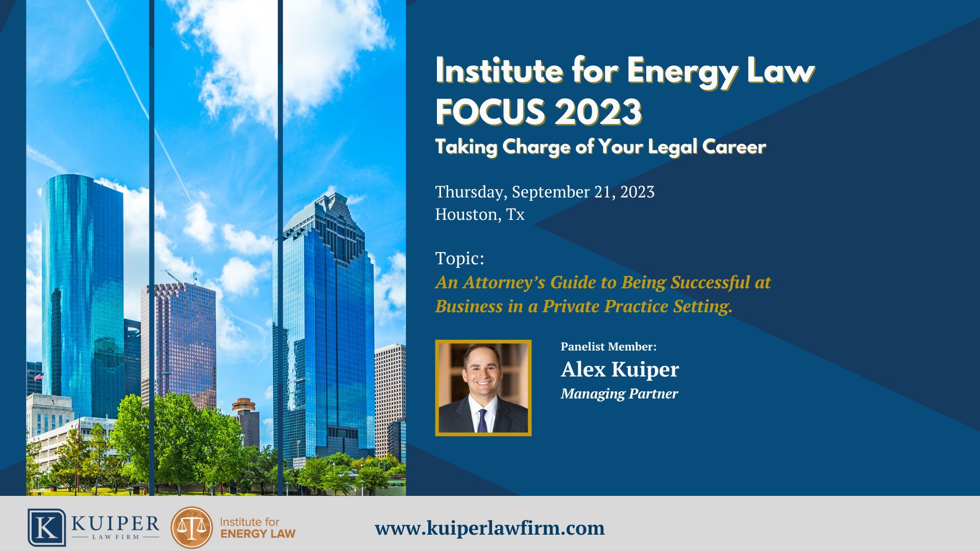 Norris Conference Center 816 Town & Country BLVD, Ste 210, TXAlex Kuiper will be a panelist and will be weighing in on the topic of "An Attorney’s Guide to Being Successful at Business in a Private Practice Setting", joined by…